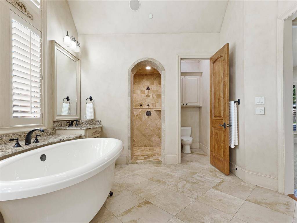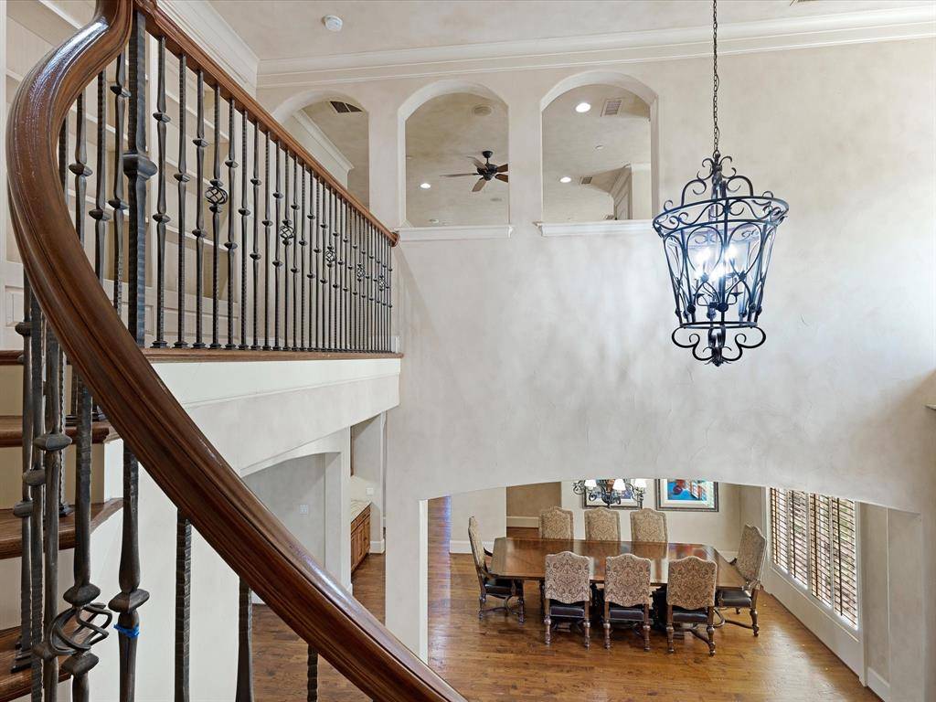 Architecturally exquisite and impeccably crafted, this custom estate is a rare gem tucked away on a serene cul-de-sac in prestigious Far North Dallas. Designed by Byron Smith Designs and masterfully built by H.G.R. Enterprises, this luxurious residence exudes timeless elegance, thoughtful functionality, and exceptional curb appeal. Set on a nearly one-acre premium lot, the home impresses from the start with its dramatic elevation, featuring stately rooflines and rich stone accents. Inside, a grand curved staircase and expansive foyer create a striking first impression, leading into an open-concept layout tailored for both lavish entertaining and intimate everyday living. Soaring ceilings, abundant natural light, and refined finishes define the main living spaces. The gourmet kitchen is a chef's dream, equipped with a Wolf range, Sub-Zero refrigerator, two dishwashers, a massive island, walk-in pantry, and effortless flow into the breakfast and family rooms. The private primary suite is a true retreat, complete with a dedicated workout room, spa-like en-suite bath, and a custom walk-in closet. Spacious secondary bedrooms offer en-suite baths, providing comfort and privacy for family or guests. Additional highlights include a formal dining room with wine cellar, private study, two laundry rooms—one with a built-in pet wash station—and versatile first-floor flex spaces perfect for media, fitness, or play. A 3.1-car porte-cochère garage enhances both convenience and curb appeal. Outdoors, a covered living area with fireplace overlooks the backyard oasis, featuring a resort-style pool and lush, park-like landscaping. Thoughtful site placement ensures maximum natural light and privacy throughout the home. Ideally located near top-rated schools, upscale shopping, and fine dining, this one-of-a-kind estate presents a rare opportunity to own a custom-built masterpiece in one of Dallas' most sought-after neighborhoods.