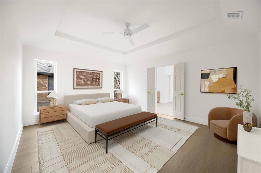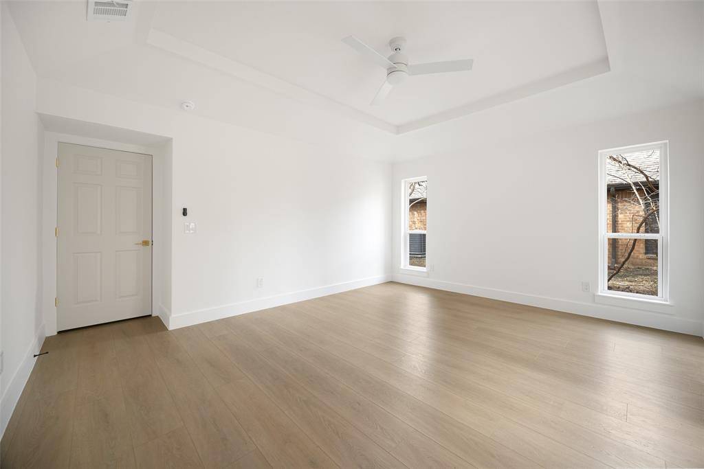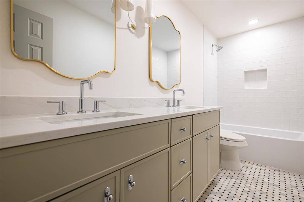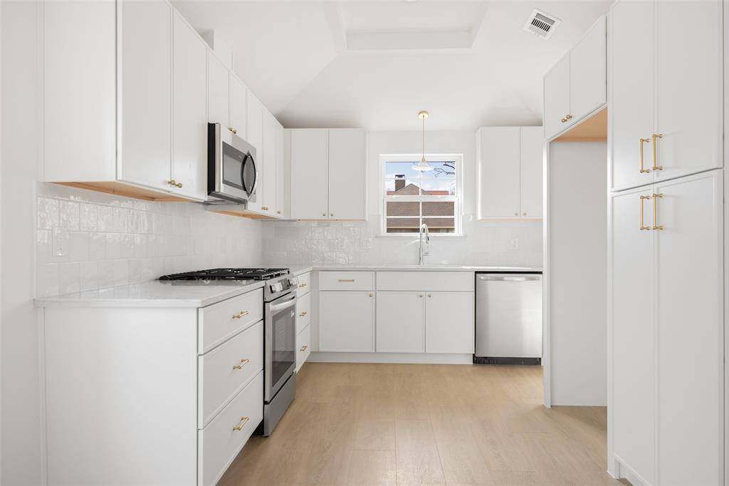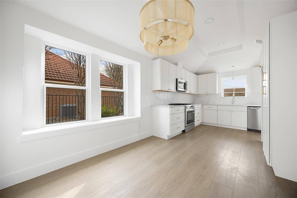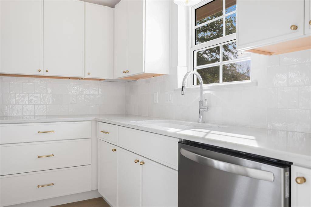 Welcome to this beautifully renovated single-story 4-bedroom, 2-bath home, thoughtfully reimagined by Maverick Design in the heart of Plano. Blending timeless character with modern sophistication, this home offers a seamless balance of style and comfort. Featuring vaulted ceilings, abundant natural light, and wide-plank flooring throughout the open-concept living space showcases elegant wall paneling, a statement chandelier, skylights, and a striking brick fireplace, flowing seamlessly into a fully remodeled kitchen with custom white cabinetry, quartz countertops, stainless steel appliances, gas range, and designer finishes. Each bathroom has been beautifully updated with curated details, and the serene primary suite boasts a spa-like ensuite complete with a soaking tub. Enjoy a private backyard with fresh fencing, lush grass, and a covered patio perfect for relaxing or entertaining. Ideally located near shopping, dining, and major roadways, this beautiful home combines timeless charm with modern style in a prime Plano neighborhood.