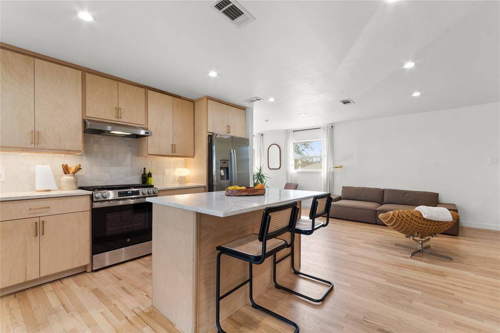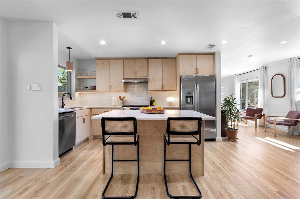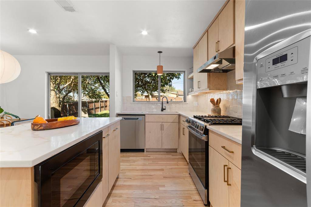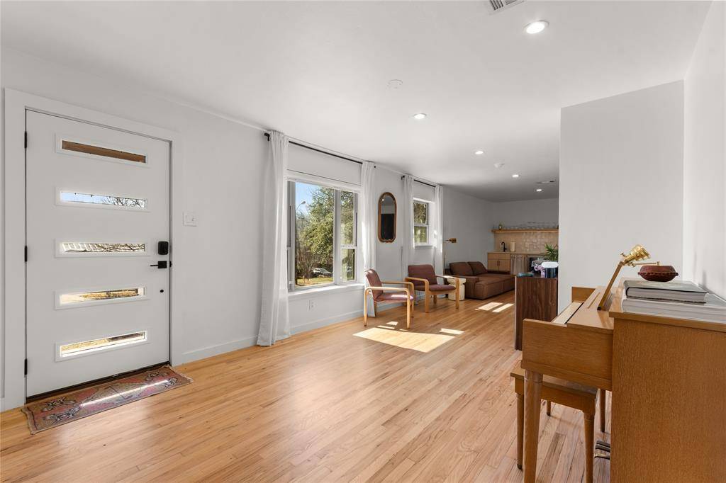 Welcome to 2211 Longwood Lane, a beautifully updated midcentury home in the desirable Forest Oaks neighborhood. Thoughtfully renovated while preserving its original character, this home offers bright, open living spaces filled with natural light, refinished hardwood floors, and fresh paint throughout. The spacious living room flows seamlessly into the dining area and fully remodeled kitchen, featuring new cabinetry, stylish backsplash, and brand new appliances. A newly added bar area with mini fridge and ice maker connection creates the perfect space for entertaining. Sliding glass doors lead to a large backyard deck, ideal for relaxing or hosting gatherings. The primary suite includes a walk-in closet and renovated ensuite bath, while two additional bedrooms offer flexibility for guests, family, or a home office. Both bathrooms have been beautifully remodeled with modern finishes. A newly created laundry space with washer and dryer connections adds everyday convenience. The home features refinished hardwood floors, updated lighting and ceiling fans, remodeled kitchen and baths, fresh paint, and major system improvements, including a 2024 roof, replaced main water line, irrigation system, EV-compatible outlet panel, and a new wood fence and backyard deck. Located just minutes from St. Francis Park, the Fraternal Order of Eagles pool, White Rock Lake, and nearby shopping and dining, this home combines classic charm with modern comfort in one of East Dallas' most convenient locations.